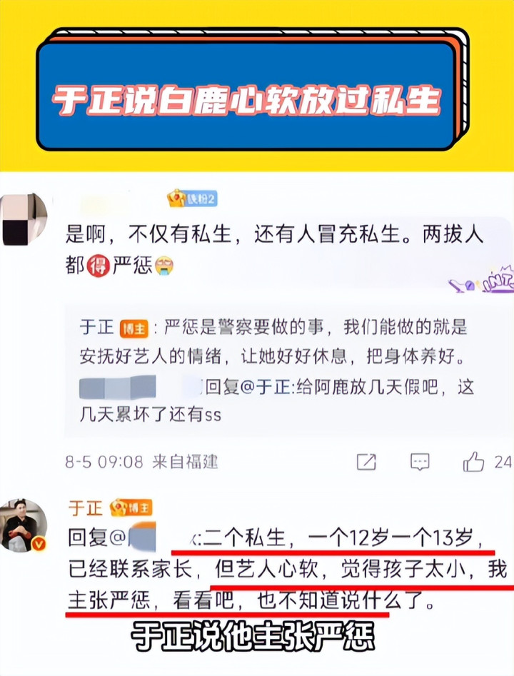面对这两个孩子,作为老板的于正在后续回应中透露,白鹿其实已经心软。