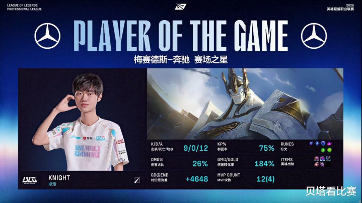 恭喜BLG! 3-2击败TES, 拿下第三赛段冠军! Knight阿卡丽团战游龙