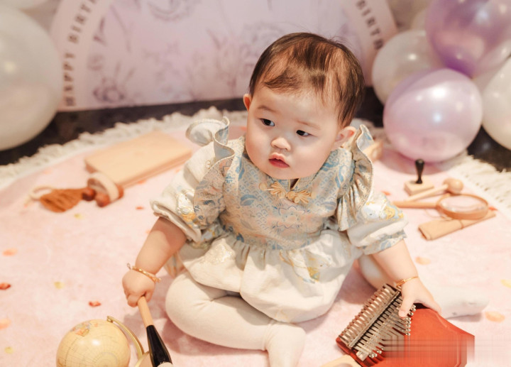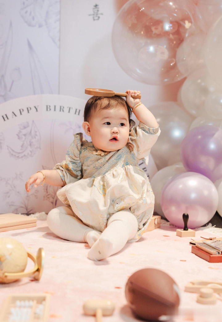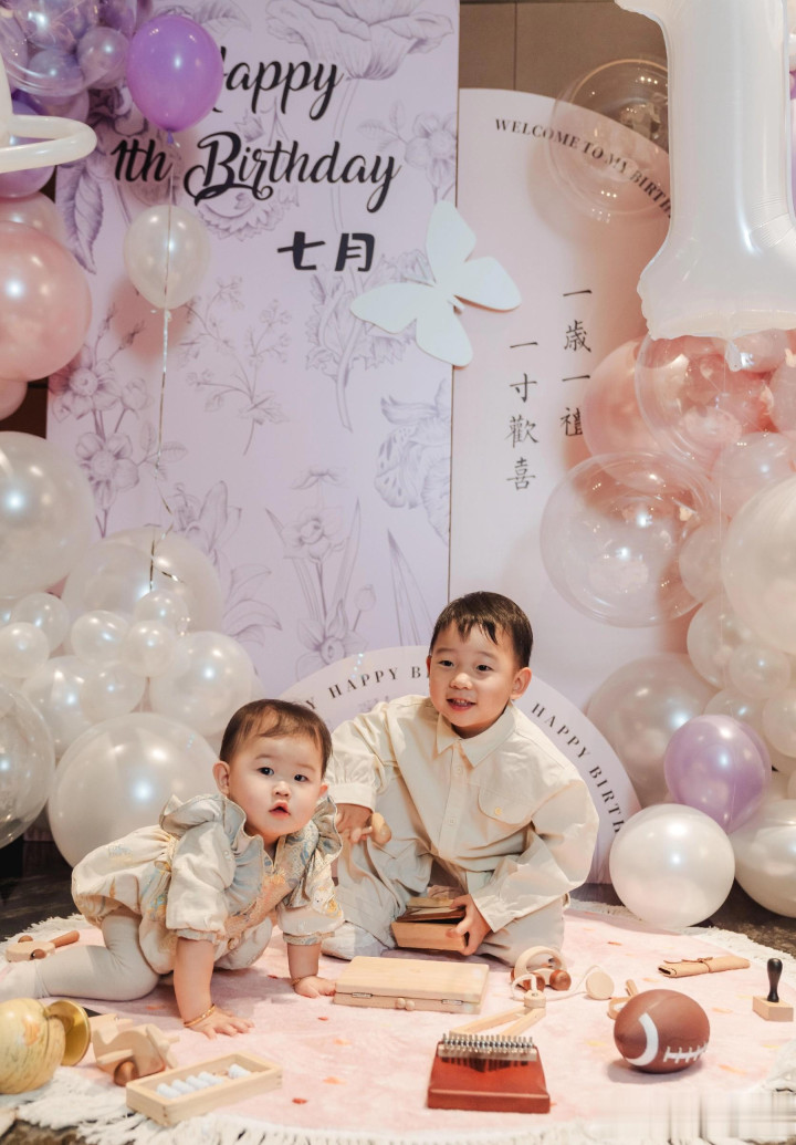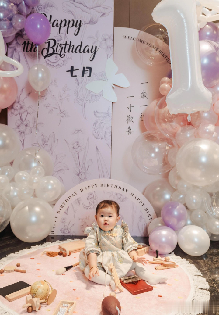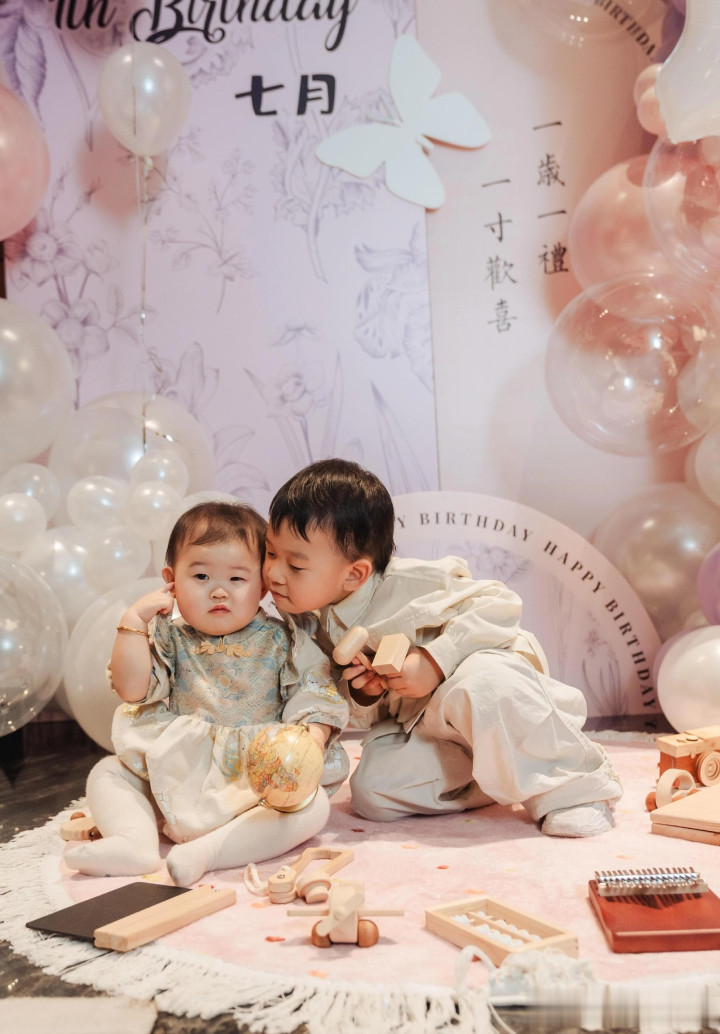 郑思维为女儿七月庆周岁生日, 艾登帅气又可爱, 一家四口好幸福