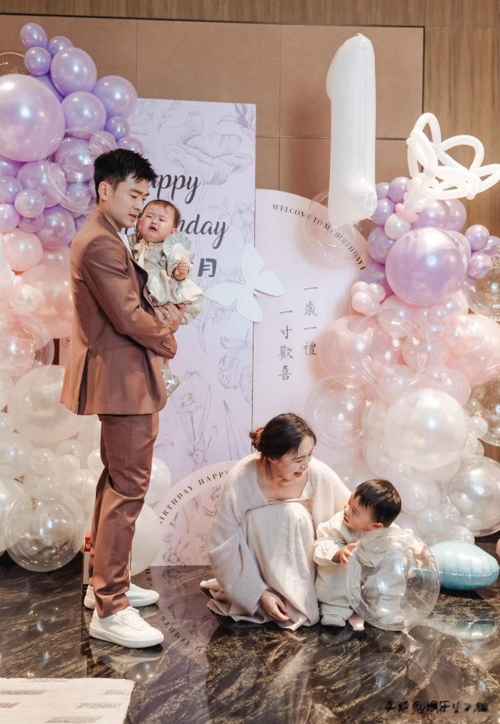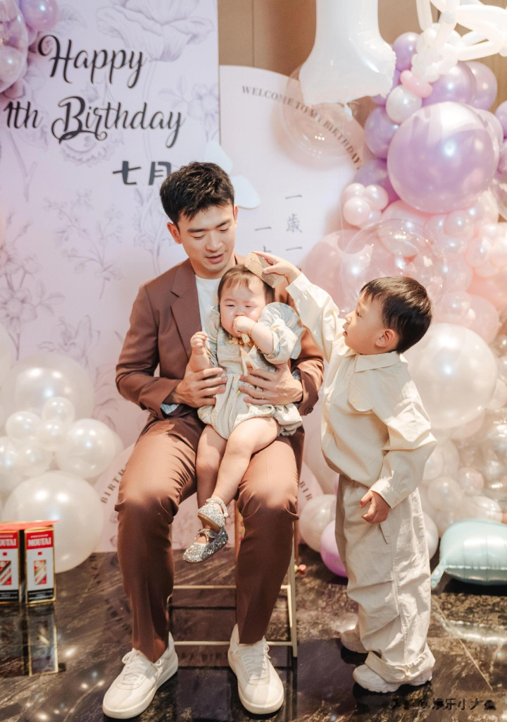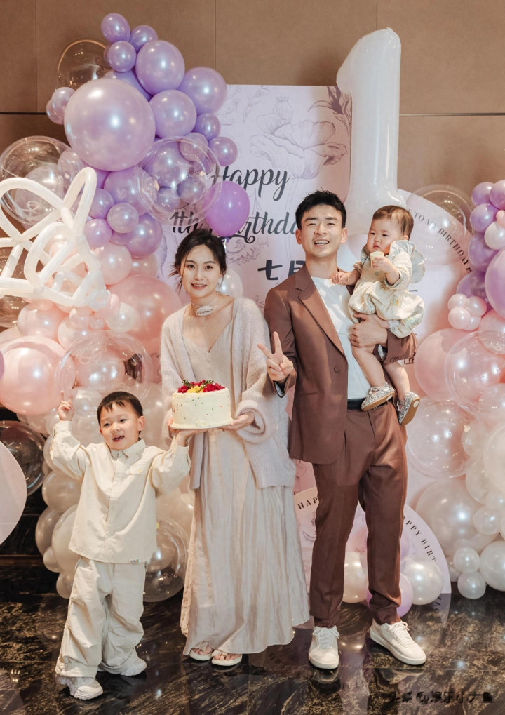 - 郑思维为女儿七月庆周岁生日, 艾登帅气又可爱, 一家四口好幸