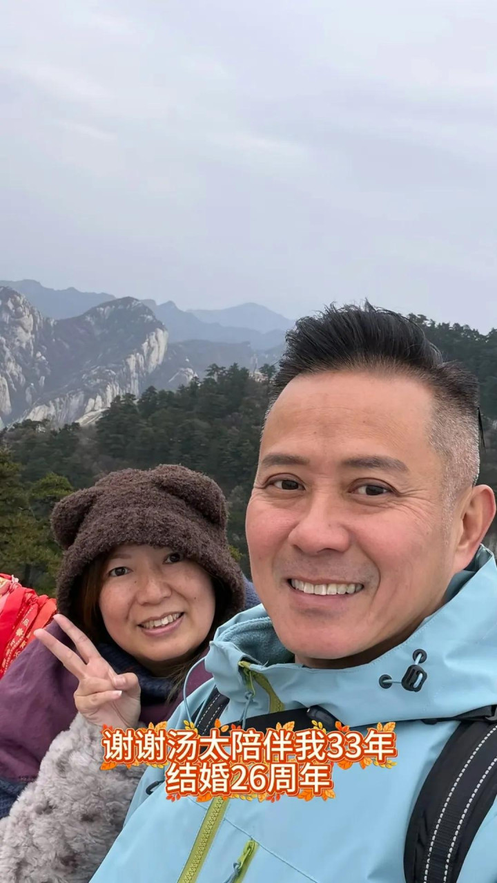 汤俊明写道:谢谢汤太陪伴我33年,结婚26周年。他还情深留言:有幸有个爱我的人,陪我行33年的路,谢谢汤太 #结婚周年”,谢谢汤太一直包容一直支持我,一起33年,真的不是一件容易的,谢谢汤太。”真挚情感获不少网民送上祝福。