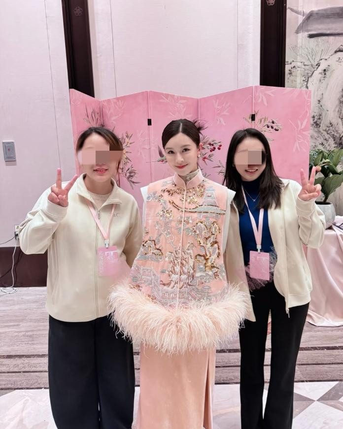36岁文咏珊产后首露面! 穿粉色新中式参加好友婚礼, 小脸圆润好美
