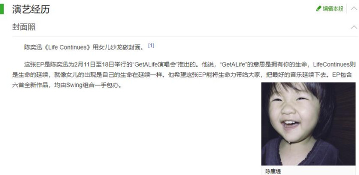 很多人不知道,2011年陈奕迅发行的专辑《Baby Song》,正是他写给刚出生女儿的“情书”。