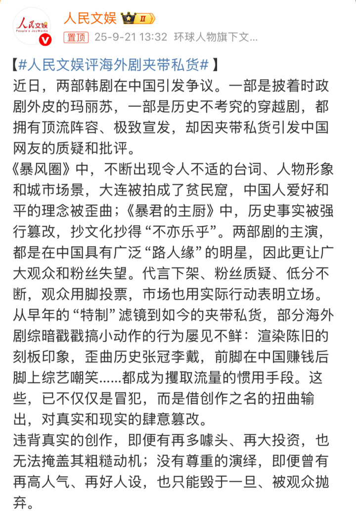 “韩流”这次应该是彻底把中国市场给堵死了,两部韩剧对中国各种抹黑、污名化、颠倒历史黑白,韩女星全智贤、林允儿也终将自食其果,或将被中国市场淘汰出局。