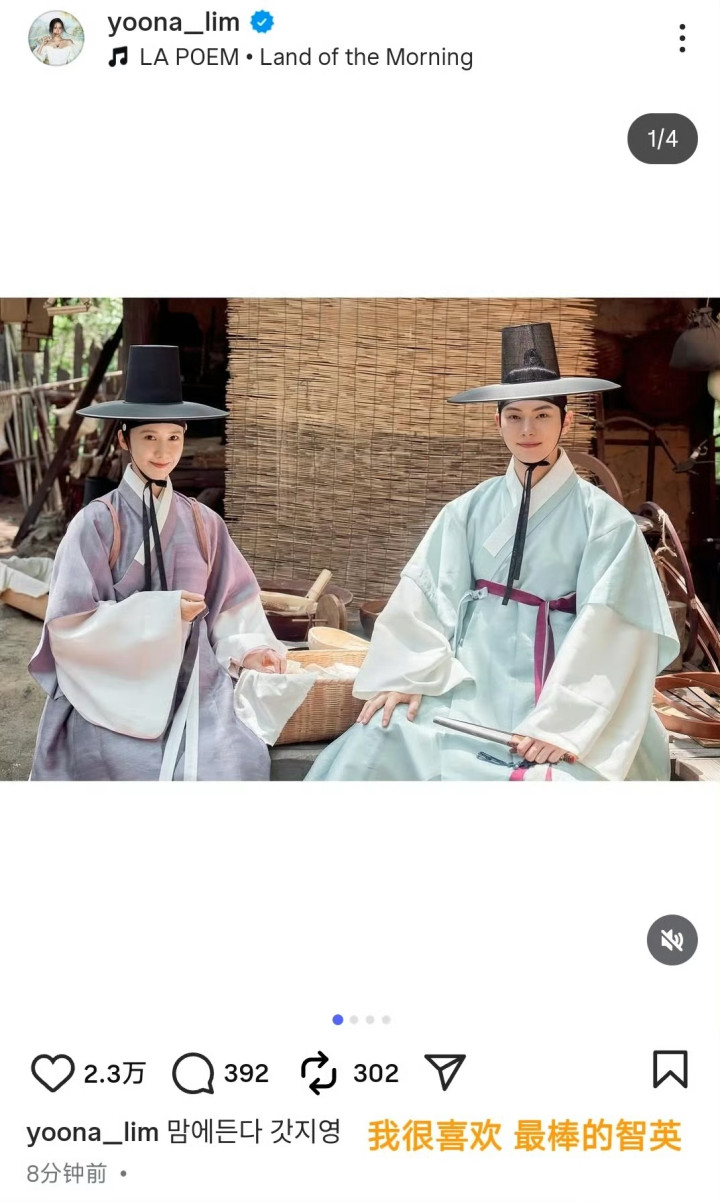 当国内官媒对《暴君的主厨》进行评论后,林允儿显然没有意识到事情的严重性,在个人社交账号发声回应。