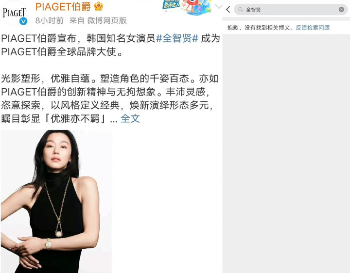 与全智贤有合作的国际大品牌接连与其切割,撤下有关她代言的商品链接,官微已经查询不到相关内容。业内人士评估,全智贤因这次风波损失或将超过2亿。