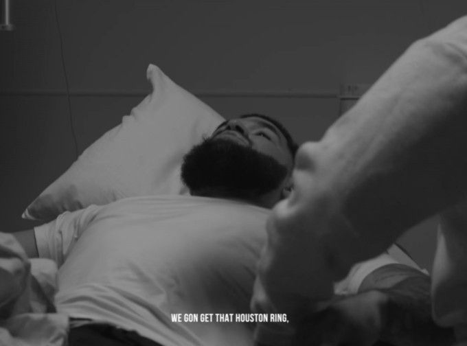 视频中范弗里特躺在病床上说了这么几句话:“我们定能再夺一冠!誓将休斯敦的冠军戒指收入囊中!火箭队必将强势崛起,突破重围!”