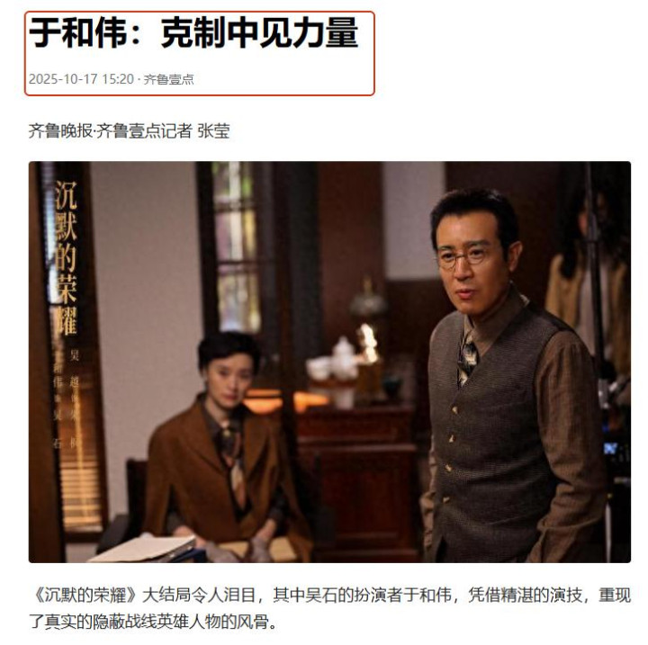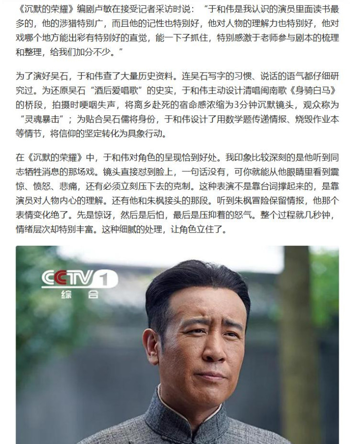 于和伟老师出神入化的演技也受到了官媒的赞扬。