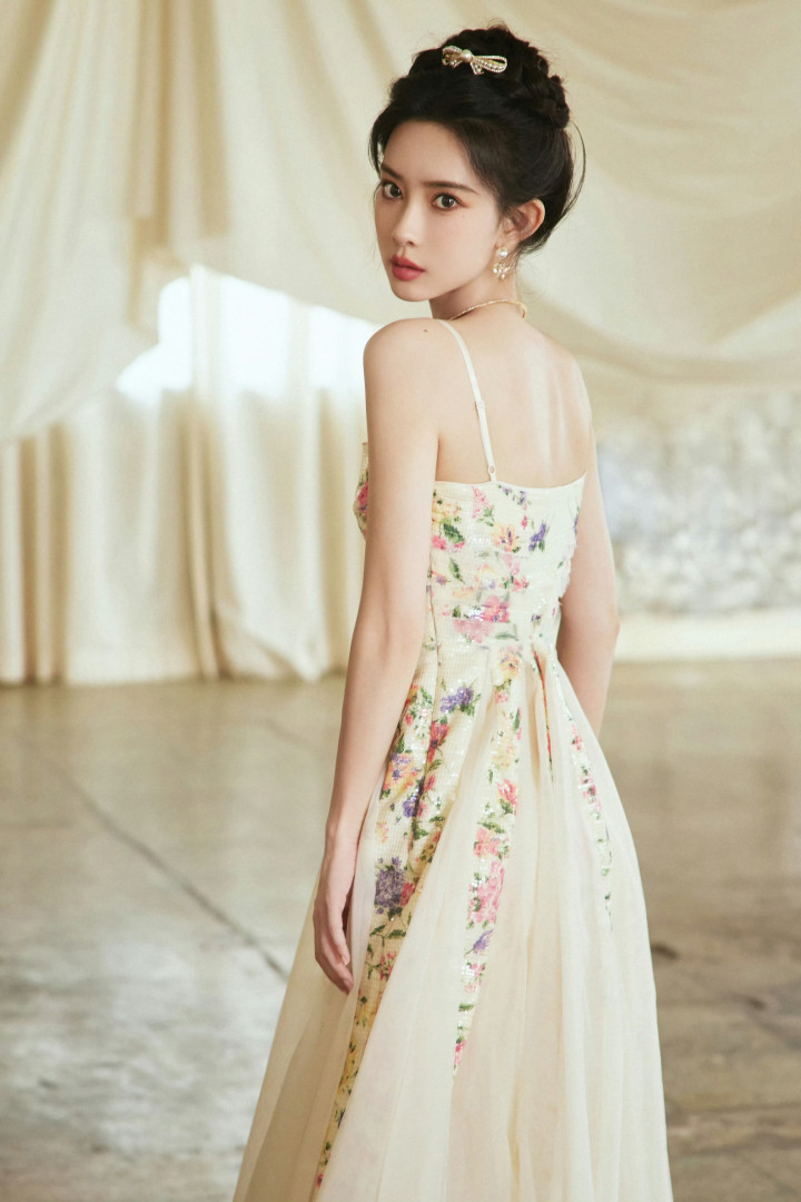 孟子义, 小碎花吊带裙, 妥妥芭比娃娃既视感